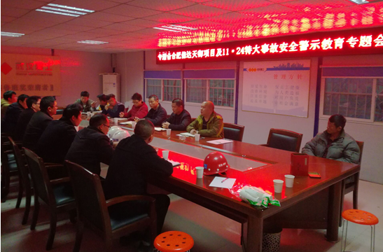2016年11月30日,阜陽(yáng)濱河花園項(xiàng)目部組織召開(kāi)合肥信達(dá)天御及11.24特大事故安全警示教育專(zhuān)題會(huì),中建五局、武漢建工項(xiàng)目部管理人員、安全員,合肥豐潤(rùn)、浙江江南監(jiān)理部全體成員參加了會(huì)議。