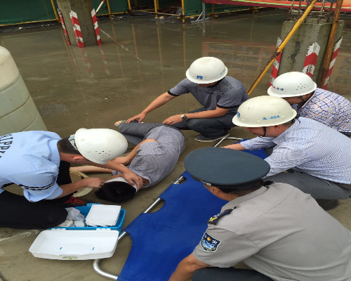本次活動模擬施工過程中高空墜物導(dǎo)致人員砸傷而開展的事故應(yīng)急處理。演練現(xiàn)場,全體成員根據(jù)安全生產(chǎn)應(yīng)急處理預(yù)案常識和流程,面對突發(fā)“事故”,立即啟動應(yīng)急救援聯(lián)動機制,以最大限度挽救受傷人員的生命、減少損失,確保企業(yè)財產(chǎn)和人員安全為宗旨,展開科學(xué)、及時、有效的搶救,參與人員各司其職,緊張有序地配合完成整場救援任務(wù)。