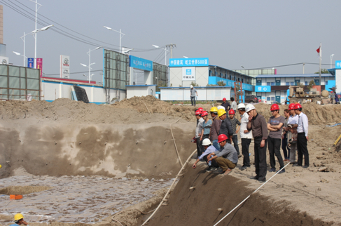 勘測(cè)院、設(shè)計(jì)院、監(jiān)理公司對(duì)展示中心基槽工程進(jìn)行現(xiàn)場(chǎng)查勘后,針對(duì)存在的問題及施工安全、質(zhì)量,提出具體要求。建設(shè)局領(lǐng)導(dǎo)提出蚌埠(皖北)國際汽車城展示中心是蚌埠市委領(lǐng)導(dǎo)重點(diǎn)關(guān)注工程,由于梅雨季節(jié)雨水較多,施工單位需做好相關(guān)施工進(jìn)度安排,做好施工防護(hù)工作。最后,驗(yàn)收組一行表示,展示中心基槽工程符合設(shè)計(jì)、勘測(cè)要求,工程一致驗(yàn)收合格,同意進(jìn)行下一道工序施工。