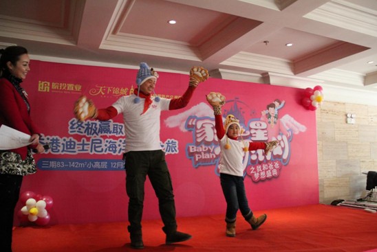 下午2點(diǎn)活動(dòng)正式開(kāi)始,【天下錦城】幸福天使幼兒園的老師和小朋友們給我們帶來(lái)了精彩舞蹈及動(dòng)感的架子鼓表演。當(dāng)天共到場(chǎng)的50組家庭,其中前15名家庭還排練了寶寶與爸爸的精彩合作表演。有羞澀的爸爸跳舞,丫丫學(xué)語(yǔ)的寶寶唱歌,也有古靈精怪小頑童朗誦……他們多才多藝,天真無(wú)邪。經(jīng)過(guò)評(píng)委的點(diǎn)評(píng)打分及大眾評(píng)委的忠實(shí)表決,角逐出15名家庭的最終排名,并頒發(fā)獎(jiǎng)狀和獎(jiǎng)品。精美的玩具套裝、兒童自行車(chē)、兒童點(diǎn)讀機(jī)和大獎(jiǎng)”香港迪士尼海洋公園“讓每一個(gè)獲獎(jiǎng)家庭都喜笑顏開(kāi)。