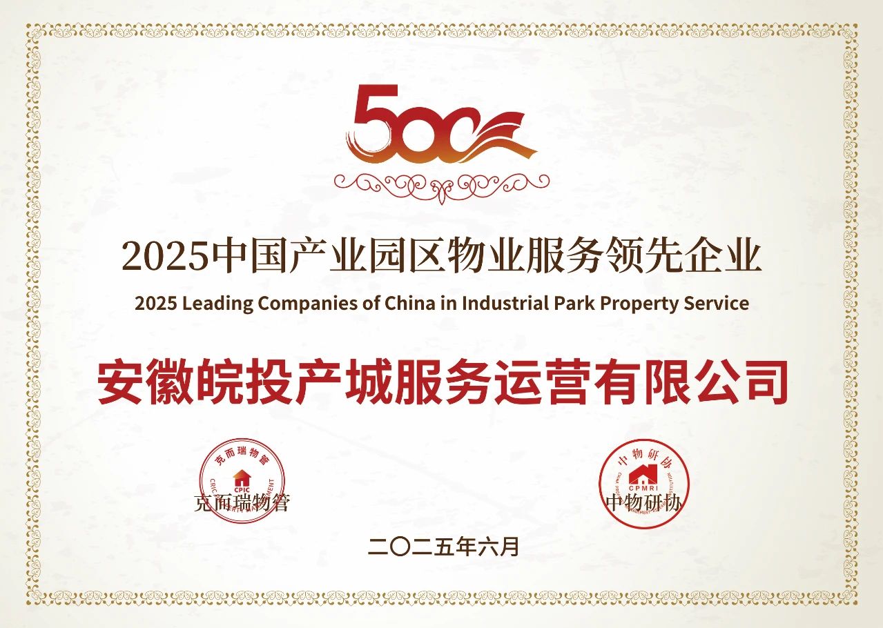 近日,在克而瑞物管權(quán)威發(fā)布的“2025中國物業(yè)服務企業(yè)綜合實力研究成果”中,安徽皖投產(chǎn)城服務運營有限公司憑借卓越的綜合實力與創(chuàng)新服務能力成功入選“2025中國物業(yè)服務企業(yè)綜合實力500強”、“2025中國產(chǎn)業(yè)園區(qū)物業(yè)服務領(lǐng)先企業(yè)”。